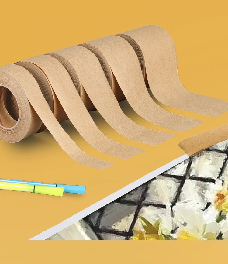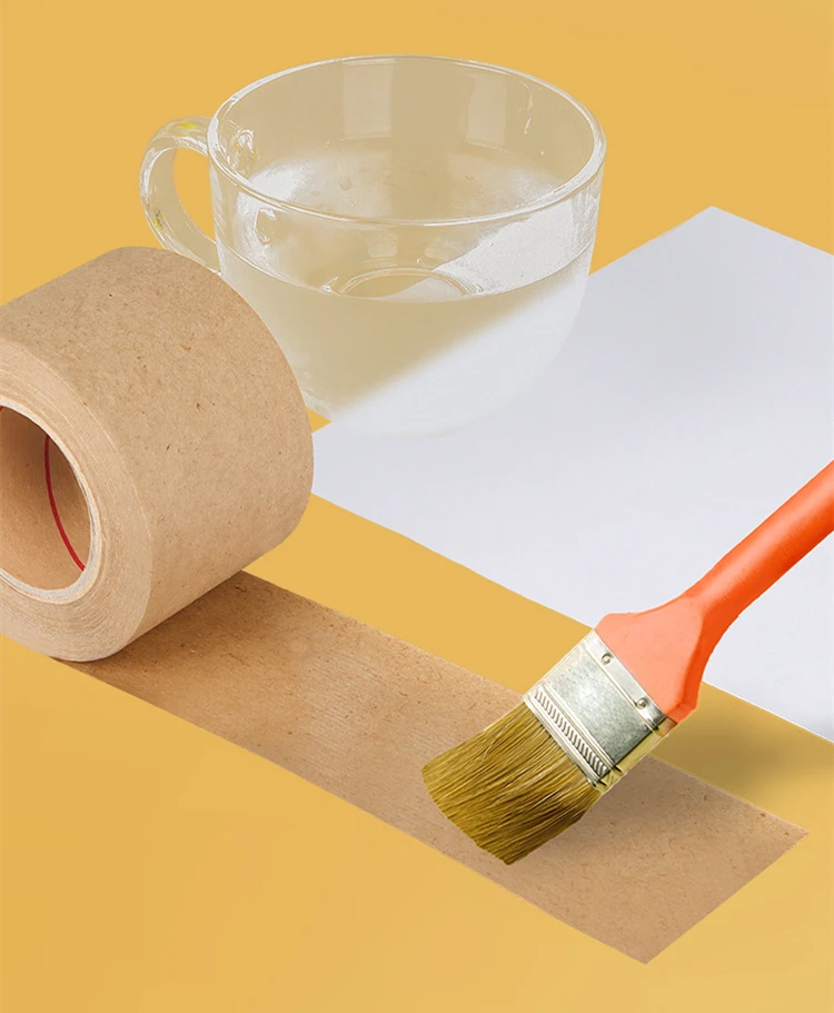 30M Biodegradable Eco Friendly Kraft Paper Tape Brown Wet Water Activated Reinforced Gummed Adhesive Tape for Painting Fixed