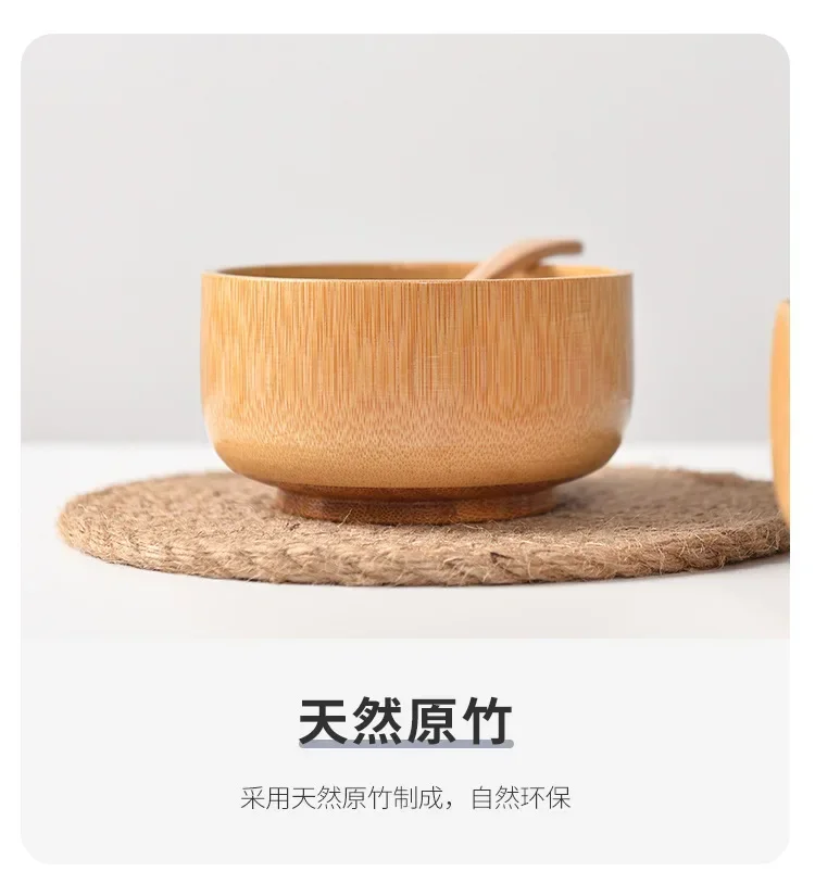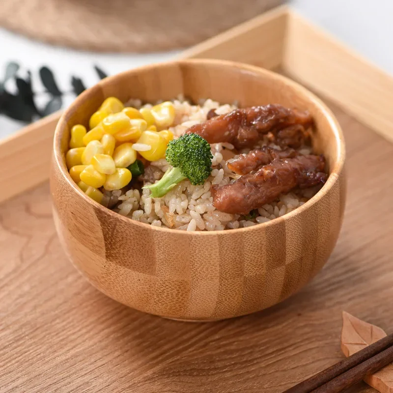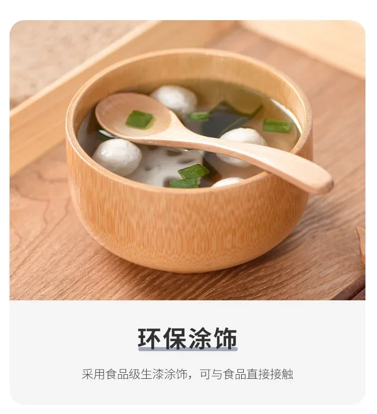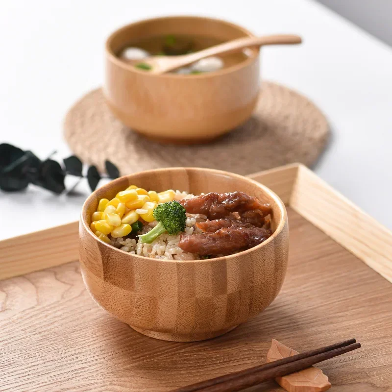 Unique Natural Bamboo Bowl with Hand Carved Circular Bowl for Japanese Tableware Safe and Non-toxic Baby Feeding Bowl
