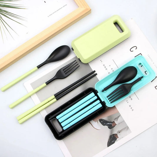 3Pcs Portable Cutlery Set with Case Foldable Travel Tableware Eco Friendly Chopsticks Fork Spoon Dinnerware Kitchen Utensils