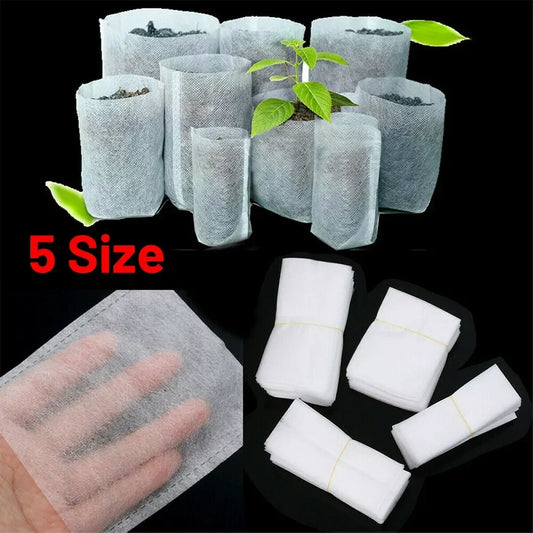 100pcs Biodegradable Nonwoven Nursery Plant Grow Bags Seedling Growing Planter Planting Pots Garden Eco-Friendly Ventilate Bag